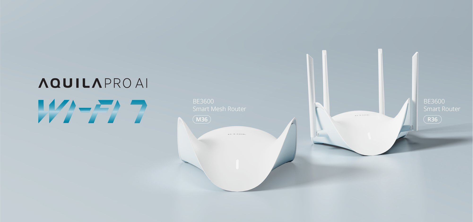 【TAIPEI, Taiwan: September 26, 2025】D-Link Corporation (TWSE: 2332), global leader in networking solutions, today announced the launch of its latest Wi-Fi 7 routers: the AQUILA PRO AI M36 BE3600 Wi-Fi 7 Smart Mesh Router and the AQUILA PRO AI R36 BE3600 Wi-Fi 7 Smart Router. As hybrid work, streaming, and smart home adoption accelerate, households and small businesses increasingly require reliable, high-speed connectivity without complexity. In line with its brand promises of MIT quality, creative innovation, solution-oriented, one-stop service, and sustainable design, D-Link introduces these new Wi-Fi 7 solutions to deliver secure, easy-to-manage, and future-ready networks.