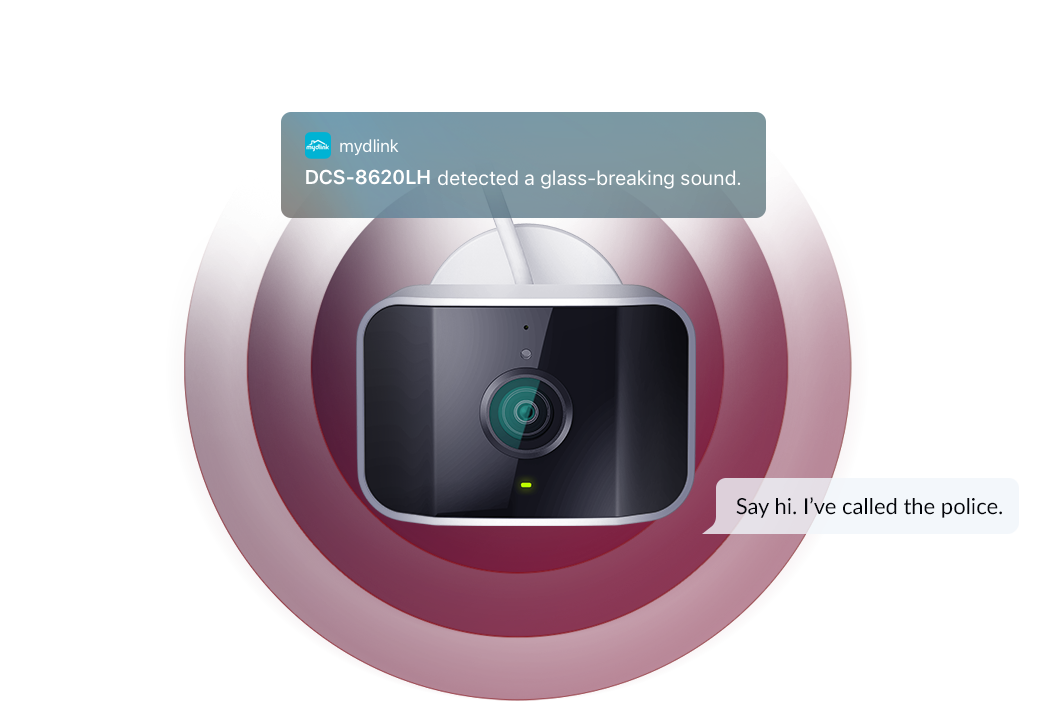 The DCS-8620LH includes an integrated glass break detector. If glass is broken, you’ll be notified immediately to keep your home and your loved ones safe if potential danger is near.