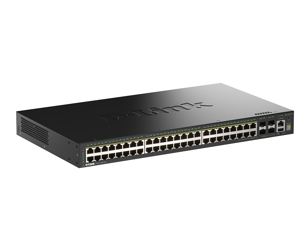 The DGS-1530-52P delivers up to 30 W per port with support for Perpetual and Fast PoE, offering a 370 W PoE budget, expandable to 740 W with the DPS-700 RPS. It powers APs, IP cameras, and VoIP phones over standard Ethernet—simplifying deployment and allowing easy planning of power resources across your network.