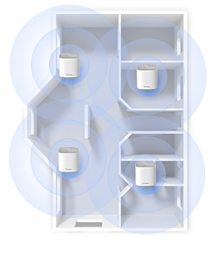 Des appartements à 1 étage aux maisons de 4 étages, en passant par les sous-sols et les terrasses de jardin - CouVrez toute votre maison en Wi-Fi pour une couverture continue qui élimine les zones mortes du Wi-Fi difficiles d’accès.