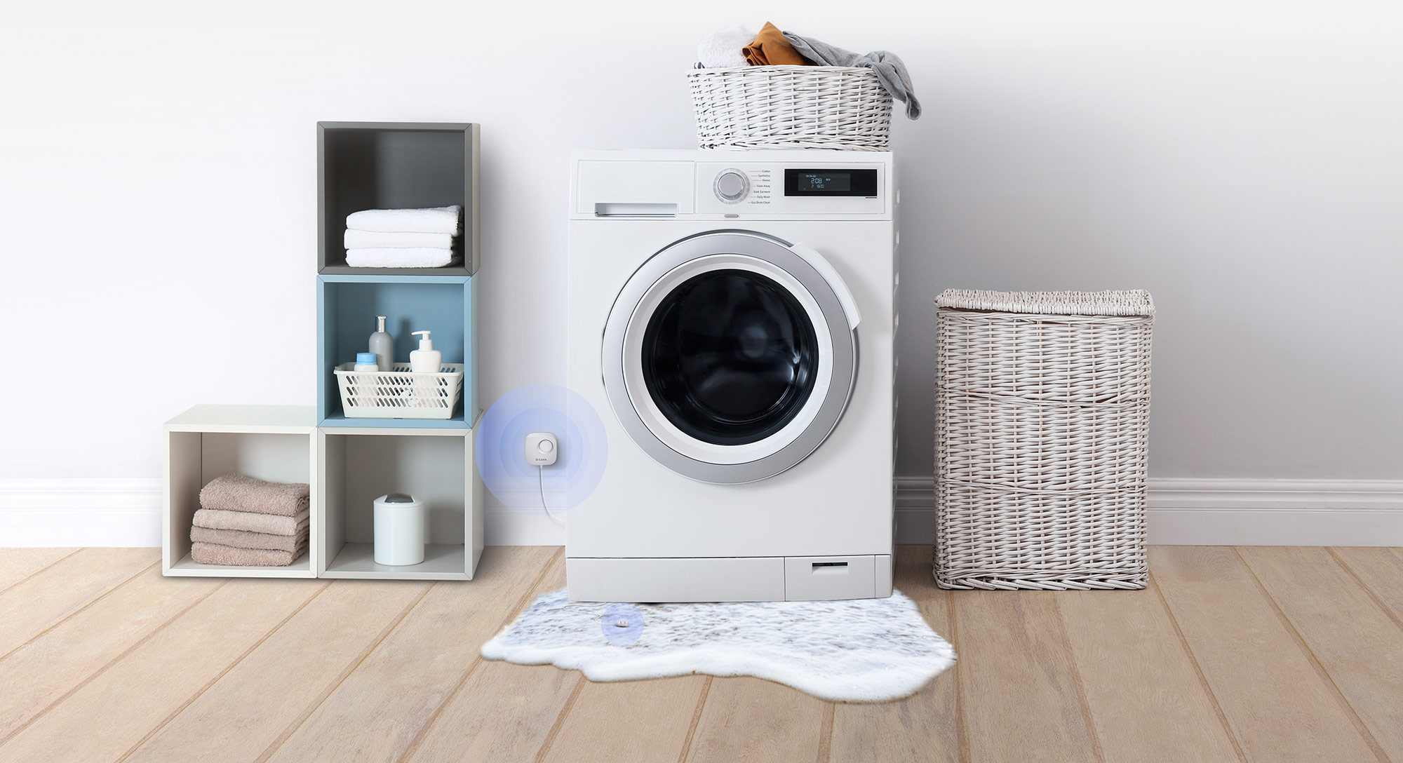 Placez le capteur d'eau intelligent, avec son câble de 1,8 m, dans la position optimale. La conception compacte du capteur lui permet de s'insérer dans des espaces plus petits afin de détecter de manière fiable l'humidité et prévenir les dégâts des eaux dans les propriétés.