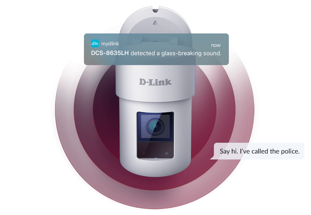 La caméra DCS-8635LH est l’une des premières caméras Smart Home au monde dotées d’un détecteur de bris de verre intégré. Si du verre est brisé, vous serez immédiatement informé de la nécessité de protéger votre maison et vos proches en cas de danger potentiel.