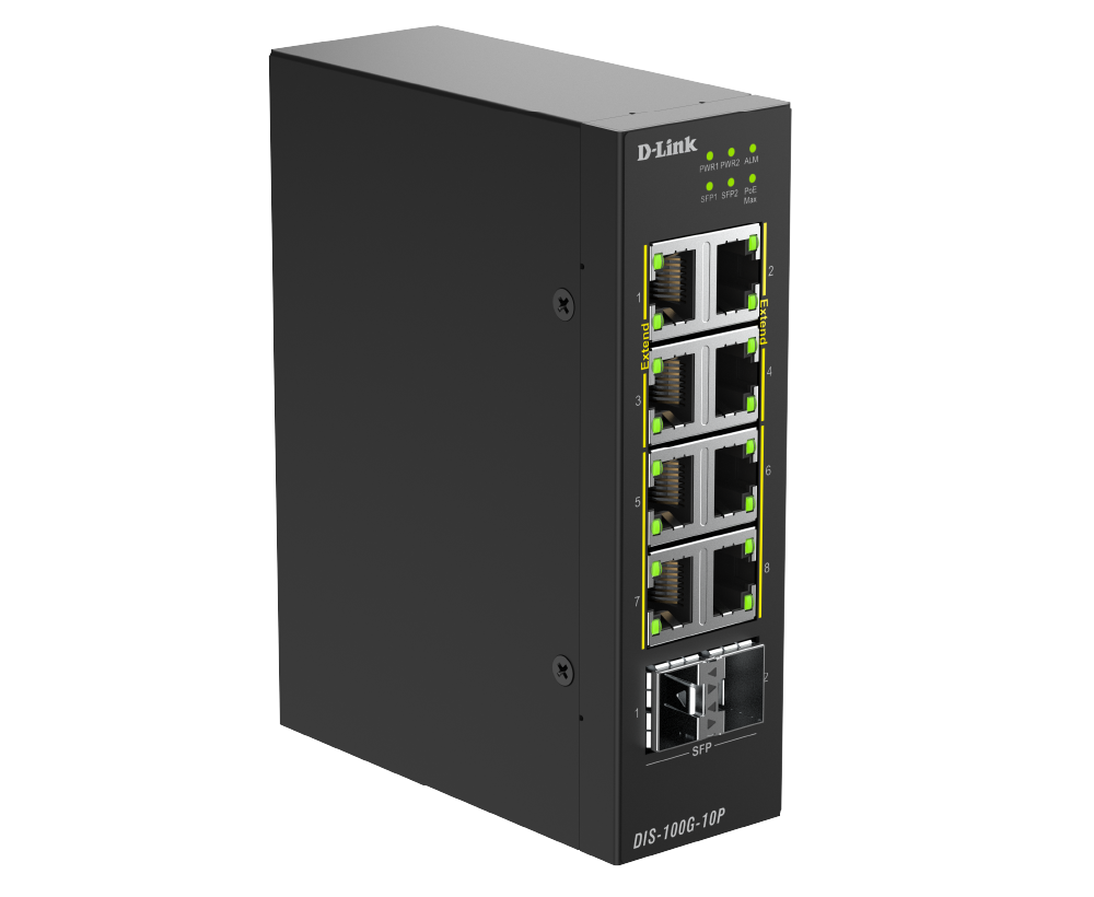 Le DIS-100G-10P est un switch industriel non administrable équipé de huit ports 1G PoE et de deux ports SFP, offrant une simplicité plug-and-play pour le déploiement. Les ports SFP prennent en charge la transmission de données longue distance, éliminant les limitations de distance du câblage Ethernet traditionnel. Avec un fonctionnement fiable et performant, il est parfaitement adapté aux déploiements en périphérie pour des applications telles que la vidéosurveillance HD, les points d’accès sans fil et bien plus encore.