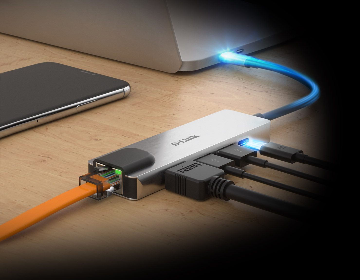 Profitez d’une station d’accueil haut de gamme simplement en branchant le concentrateur sur un port USB-C de votre ordinateur. Vous pouvez accéder directement à un réseau LAN privé avec des vitesses Gigabit Ethernet, étendre votre moniteur sur un deuxième écran, transférer des fichiers à partir d’appareils USB 3.0 et charger votre ordinateur portable, tout cela en même temps. Vous avez besoin de travailler à distance ? Débranchez simplement le câble unique du concentrateur et vous serez prêt à partir avec votre ordinateur portable.