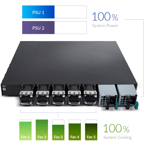 La série DXS-3610 est dotée d’un ventilateur modulaire de secours, offrant une redondance n+1 pour le système. La conception modulaire de l’alimentation permet des sources d’alimentation CA pour une flexibilité de déploiement maximale. Avec les doubles modules d’alimentation, la charge électrique est répartie, ce qui prolonge la durée de vie des modules.