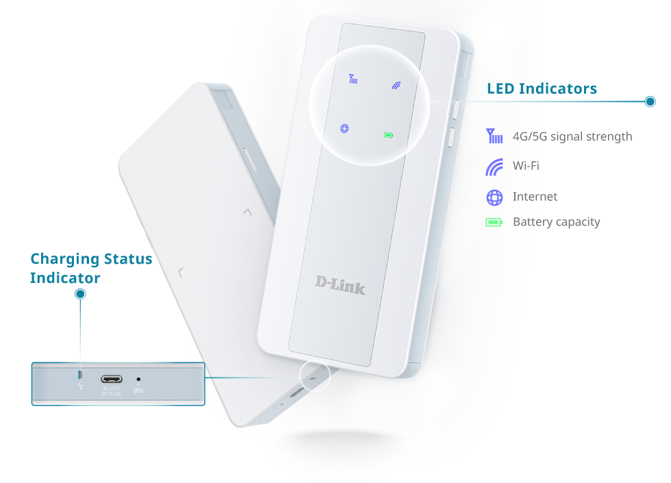 1 emplacement pour carte Nano SIM (4FF) 1 x USB Type-C with USB Power Delivery (PD 3.0) 1 bouton d’alimentation 1 bouton WPS 1 bouton de coupure d’alimentation |
