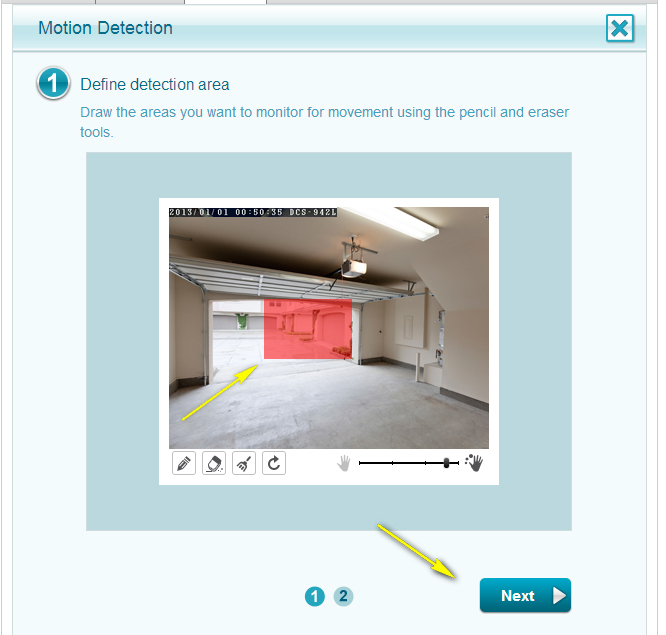 Step 5: Use your mouse and the drawing tools to select the detection area, and select the desired sensitivity level using the slider on the bottom right-hand side of the page.