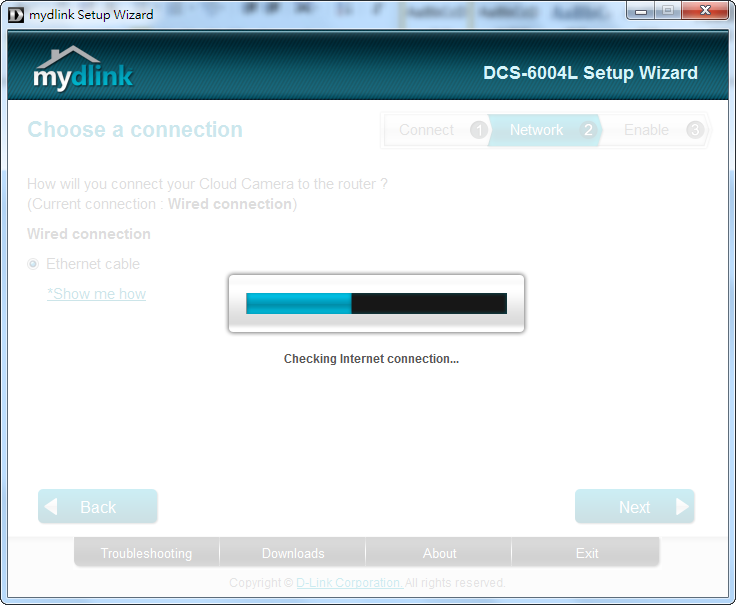 - Step 4.2: The below screen will appear while the camera checks your Internet connection.