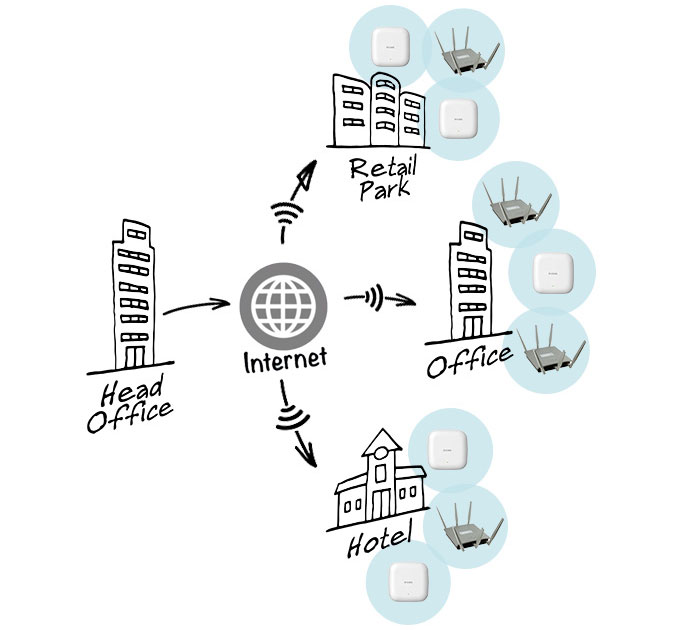 Beheer tot 1000 access points vanaf een centraal piunt, ongeacht de geografische locatie.