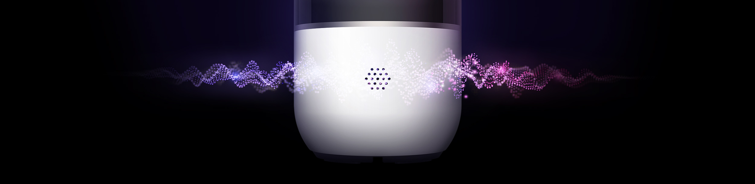 Praat en luister via in het ontwerp geïntegreerde luidsprekers en een ingebouwde microfoon om geluiden te detecteren.