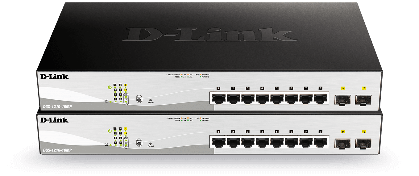 De serie DGS-1210 Gigabit Smart+ Switches met Glasvezelpoorten omvat een aantal betaalbare PoE-switches voor bedrijven die VoIP-telefoons, draadloze access points of netwerkcamera's via de netwerkkabel van stroom willen voorzien.