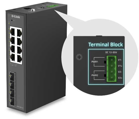 De DIS-210G-12 ondersteunt twee voedingen, die elk het apparaat onafhankelijk van stroom kunnen voorzien. Deze redundantie garandeert continue werking bij uitval van één voedingsbron, vermindert het risico op uitschakeling en behoudt de netwerkprestaties.