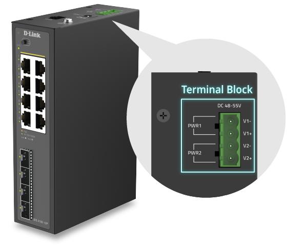 De DIS-210G-12P ondersteunt twee voedingen, die elk het apparaat onafhankelijk van stroom kunnen voorzien. Deze redundantie garandeert continue werking bij uitval van één voedingsbron, vermindert het risico op uitschakeling en behoudt de netwerkprestaties.
