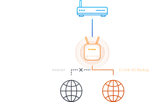 De DWR-953 Wireless AC1200 4G LTE Multi-WAN Router stelt u in staat om naadloos over te schakelen naar een 4G LTE mobiel internet back-up netwerk wanneer uw breedbandinternet uitvalt, met downloadsnelheden tot wel 150 Mbps2, zodat u het internet zonder onderbrekingen kunt blijven gebruiken.