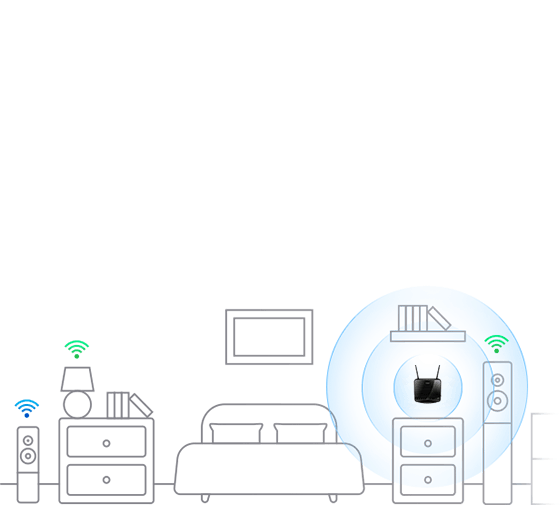 Deel een 4G LTE mobiele breedband met meerdere apparaten als smart tv's, gameconsoles, telefoons, tablets, en smarthome-apparatuur met een sterk Wi-Fi-signal van wel 1200 Mbps2 en 4 gigabit-poorten voor bedrade verbindingen. Plaats eenvoudig uw Sim-kaart en deel uw 4G LTE draadloze netwerk met uw apparatuur.