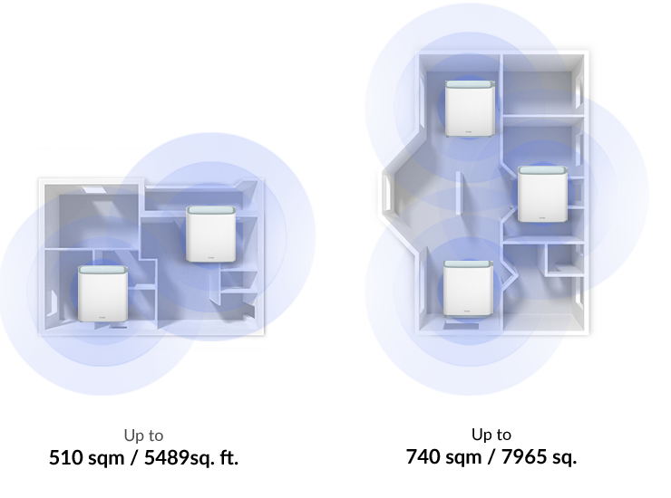 - Naadloze Whole-Home Mesh Wi-Fi 6 dekking