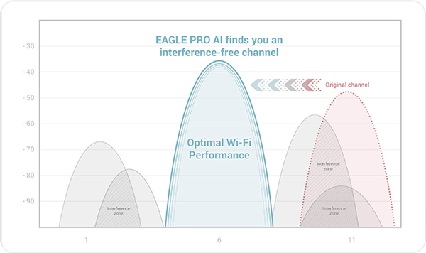 AI Wi-Fi Optimiser continuously scans the environment to keep you connected to the cleanest channel available.