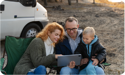 Stream music, share photos, or check emails in real time around the campfire