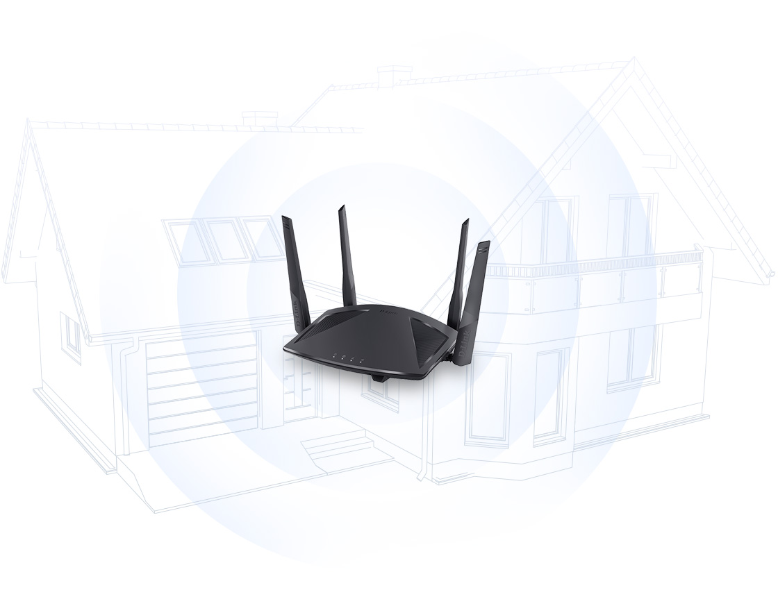 Díky mnohem většímu výkonu než v případě Wi-Fi 5 dokáže DIR‑X1860 s dvoujádrovým 880 MHz CPU zvládnout obrovské množství datových přenosů, takže si můžete vychutnat hraní bez zpoždění a živé 4K nebo full HD streamování bez ukládání do vyrovnávací paměti.