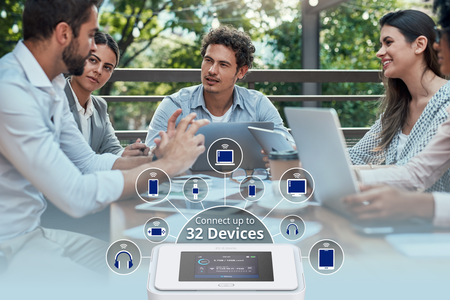 Shares a single mobile broadband connection with up to 32 devices, perfect for keeping everyone online, whether friends, family, or remote teams on the move.