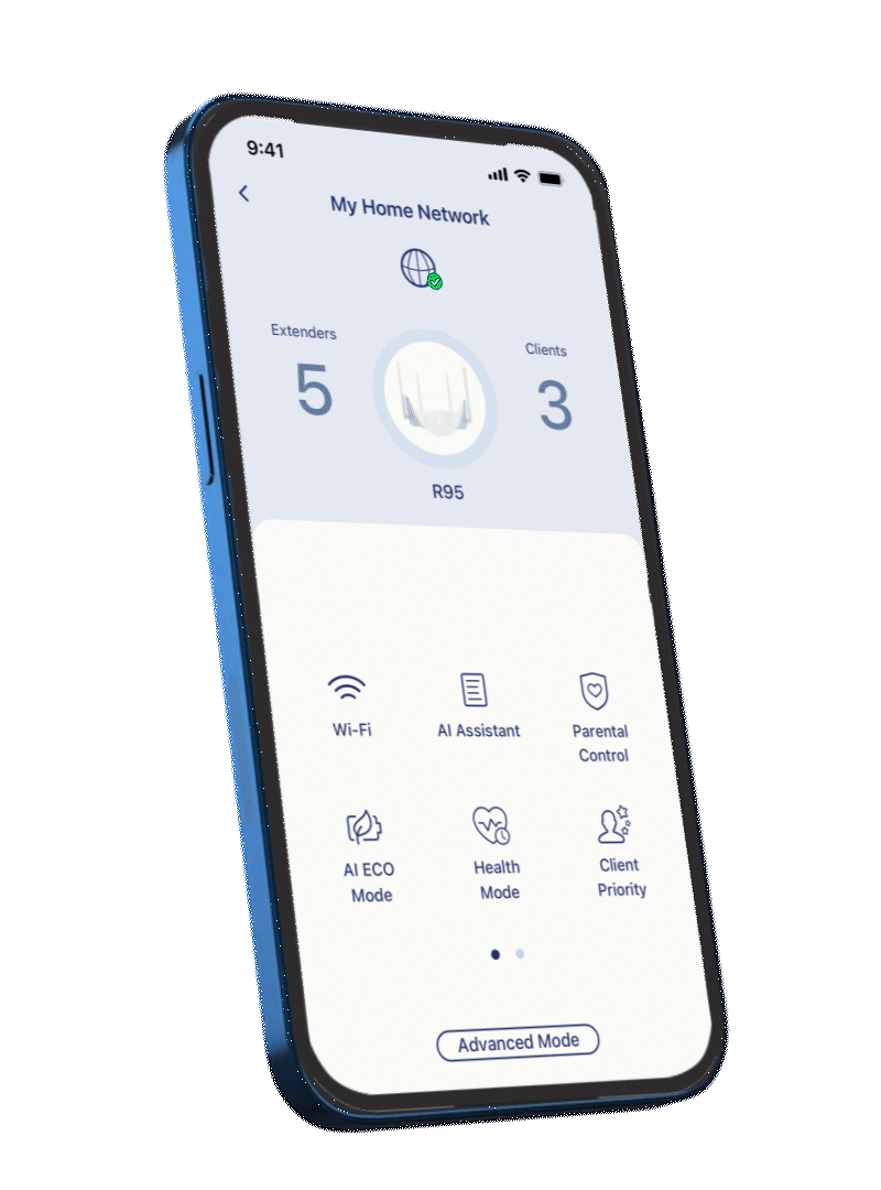 Snadno spravujte celou svou síť, optimalizujte výkon, monitorujte připojení, blokujte nežádoucí zařízení, nastavujte rodičovskou kontrolu, povolujte Wi-Fi pro hosty a plánujte aktualizace – to vše v jedné výkonné aplikaci.
