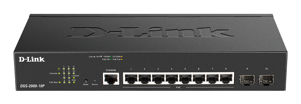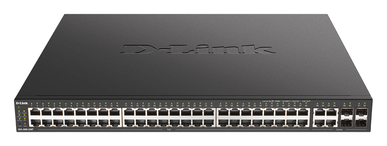 The DGS-2000 Series includes a wide range of port density and media types, from 10 to 52 ports, including Gigabit copper, fibre and combo ports. All PoE switches within the series support PoE+ and provide high power budgets of up to 370W, allowing more PoE devices to be connected and powered.