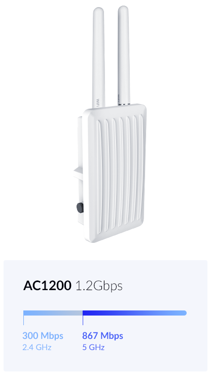 - Dual-band AC1200 speeds: 300 Mbps on 2.4 GHz, 867 Mbps on 5 GHz