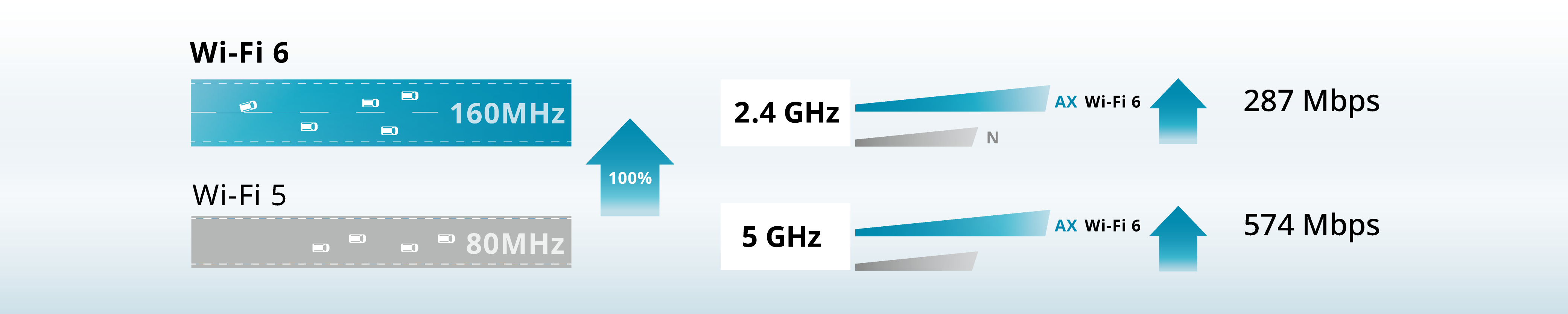 1. Maximum wireless signal rates are based on IEEE 802.11ax/ac/n/g/b standards. Actual data throughput may vary depending on the specific network environment and conditions.
