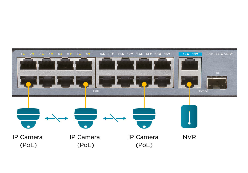The DSS-100E-18P is not just for cameras, it’s ready to support other surveillance-related devices as well. Simply plug in the devices you need to complete your setup; the switch can then automatically detect what has been connected. It then adjusts accordingly to provide optimal performance. Ideal for a power surveillance with minimal management fuss.