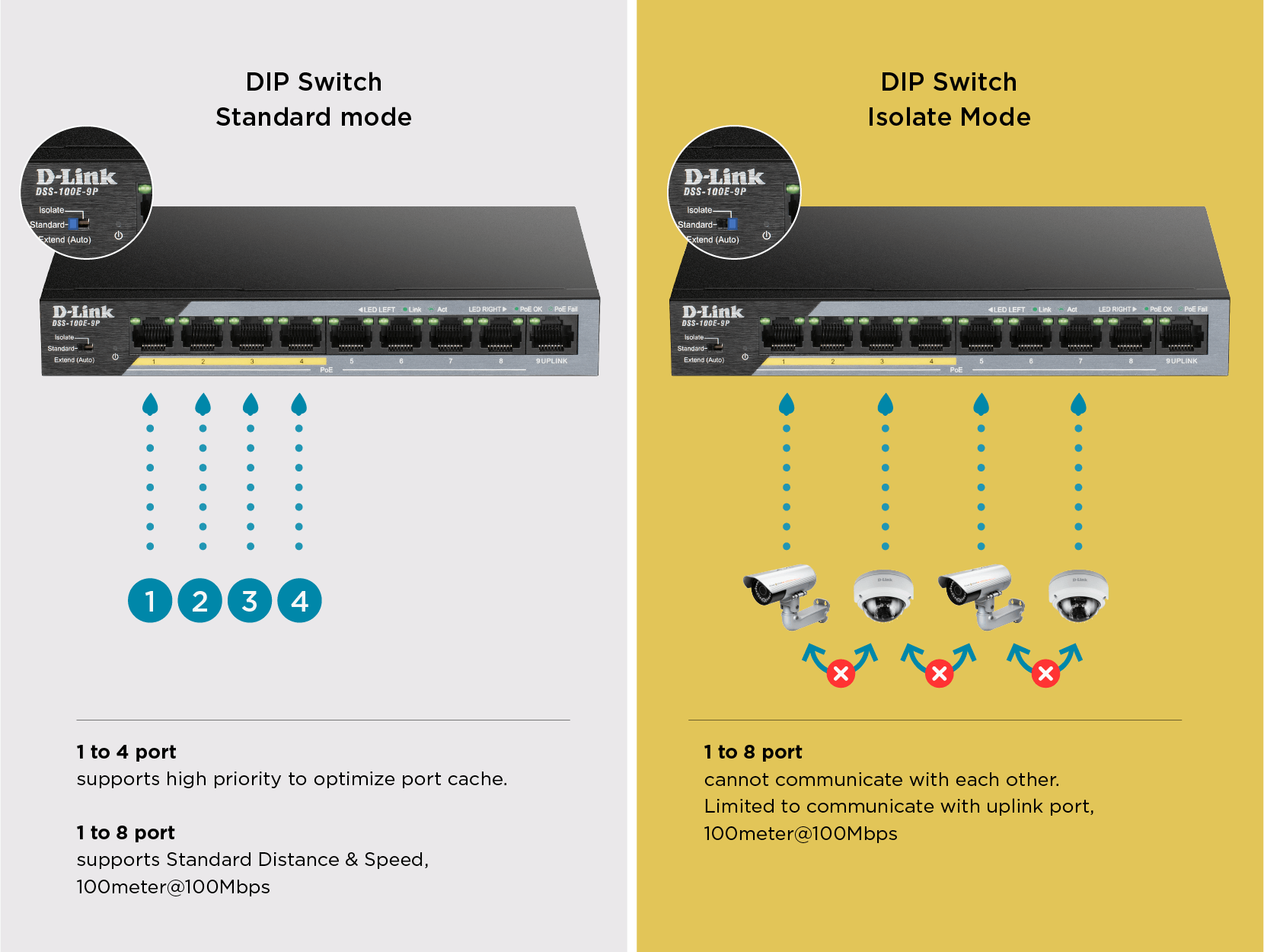 The DSS-100E-9P is designed for a surveillance scenario, therefore it is ready to support all related devices. Simply plug in the devices you need to complete your setup and the switch can automatically detect what has been connected. It then adjusts according to provide optimal performance. Ideal for a power surveillance with minimal management fuss.