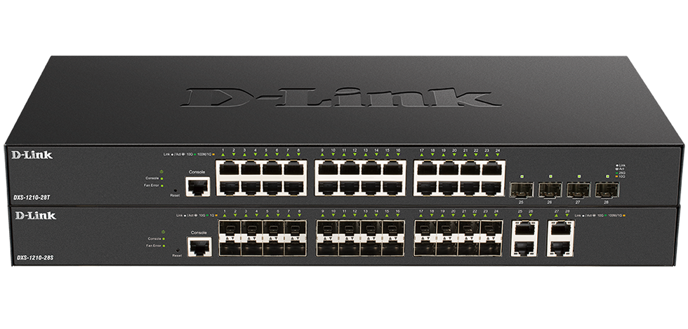 - 25GbE SFP28 ports1 (DXS-1210-28T only)