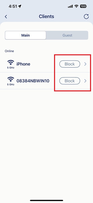 You can use the Block device feature to block client devices, such as child’s smart phone or an unknown device, from connecting to your router’s network. To block or unblock client devices, please follow the steps below:
