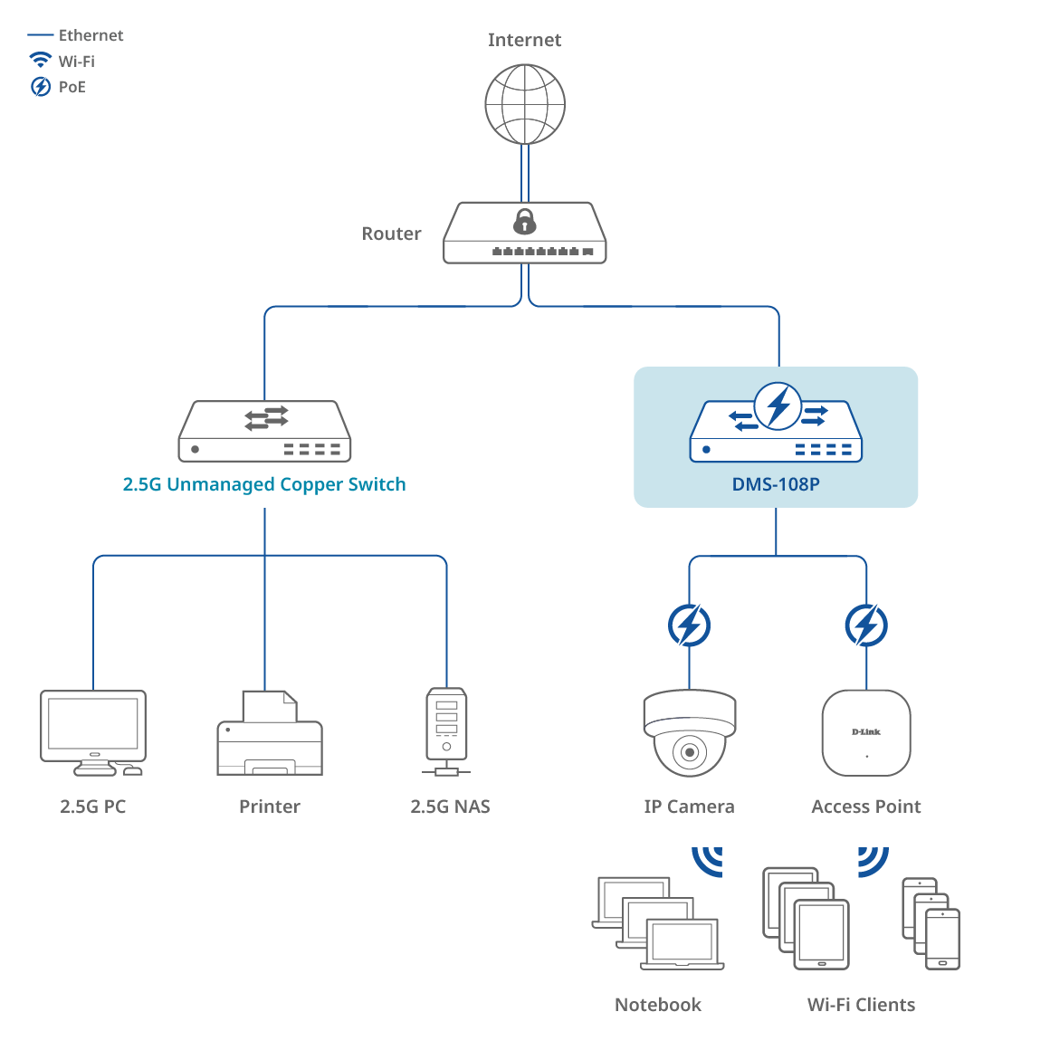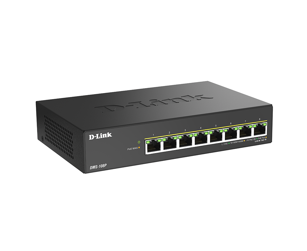 The cost-effective DMS-108P not only delivers plug-and-play 2.5G PoE connectivity for edge powered devices, it offers performance optimization to help eliminate bottlenecks for applications such as Wi-Fi 6, HD surveillance, 4K/8K streaming, and much more.