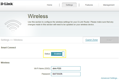 Smart Connect - Creates a 'single' wireless network for your devices to connect to. Behind the scenes, the router automatically determines whether to connect a device to the 2.4 or 5 GHz band, thereby providing the best speed and range for each device and optimally distributing devices to each network.