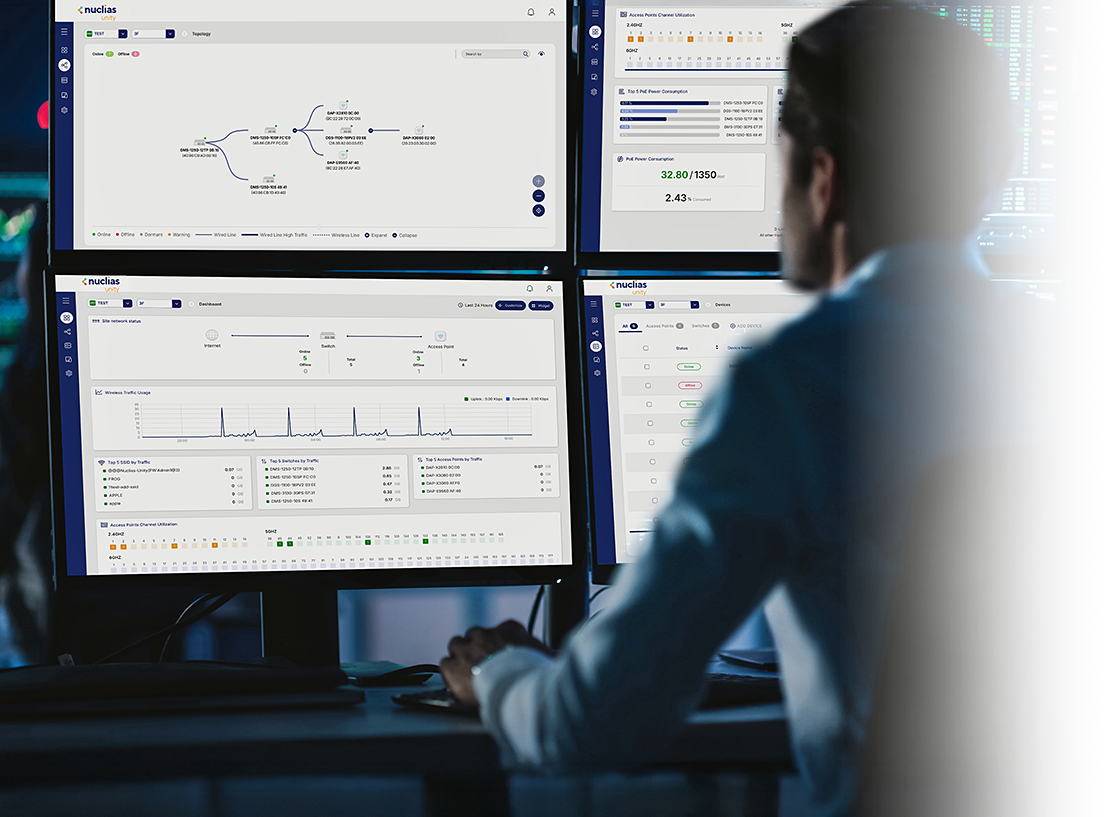 Nuclias Unity is your single pane of glass for complete, cloud-based network control. Unify the setup, monitoring, and security of all your APs and switches from one intuitive dashboard. Visualise your entire network on a live topology map, push centralised configurations with a click, and get proactive alerts. Deploy faster, troubleshoot smarter, and simplify your IT life and reclaim your time.