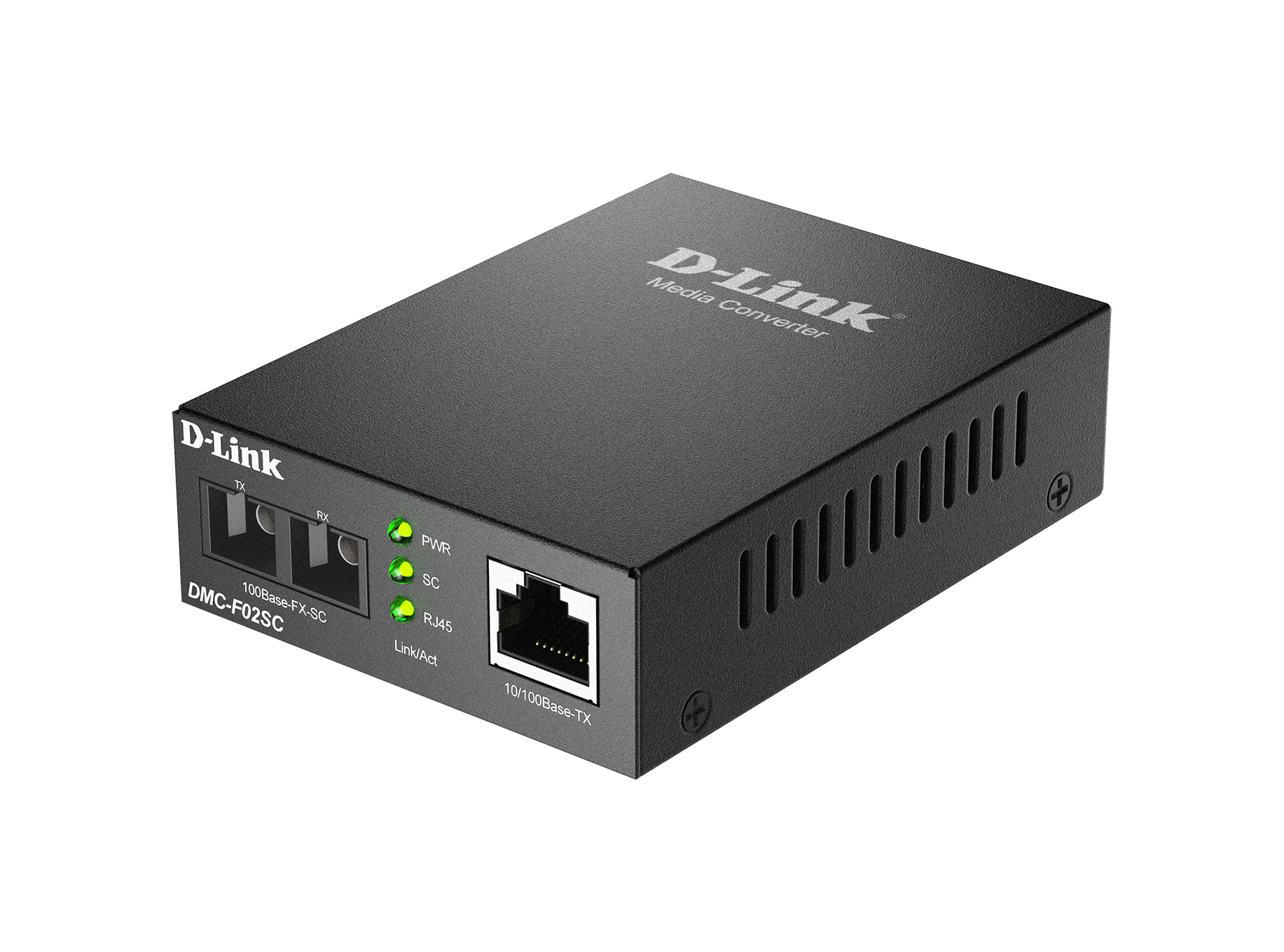 The DMC-F02SC is a standalone media converter designed to convert a twisted-pair 10/100Base- TX Fast Ethernet connection to a multi-mode fibre 100Base-FX Fast Ethernet connection to extend a connection distance (up to 2 km) between two devices. This media converter is equipped with one RJ-45 for twisted-pair and one fibre optic SC port.