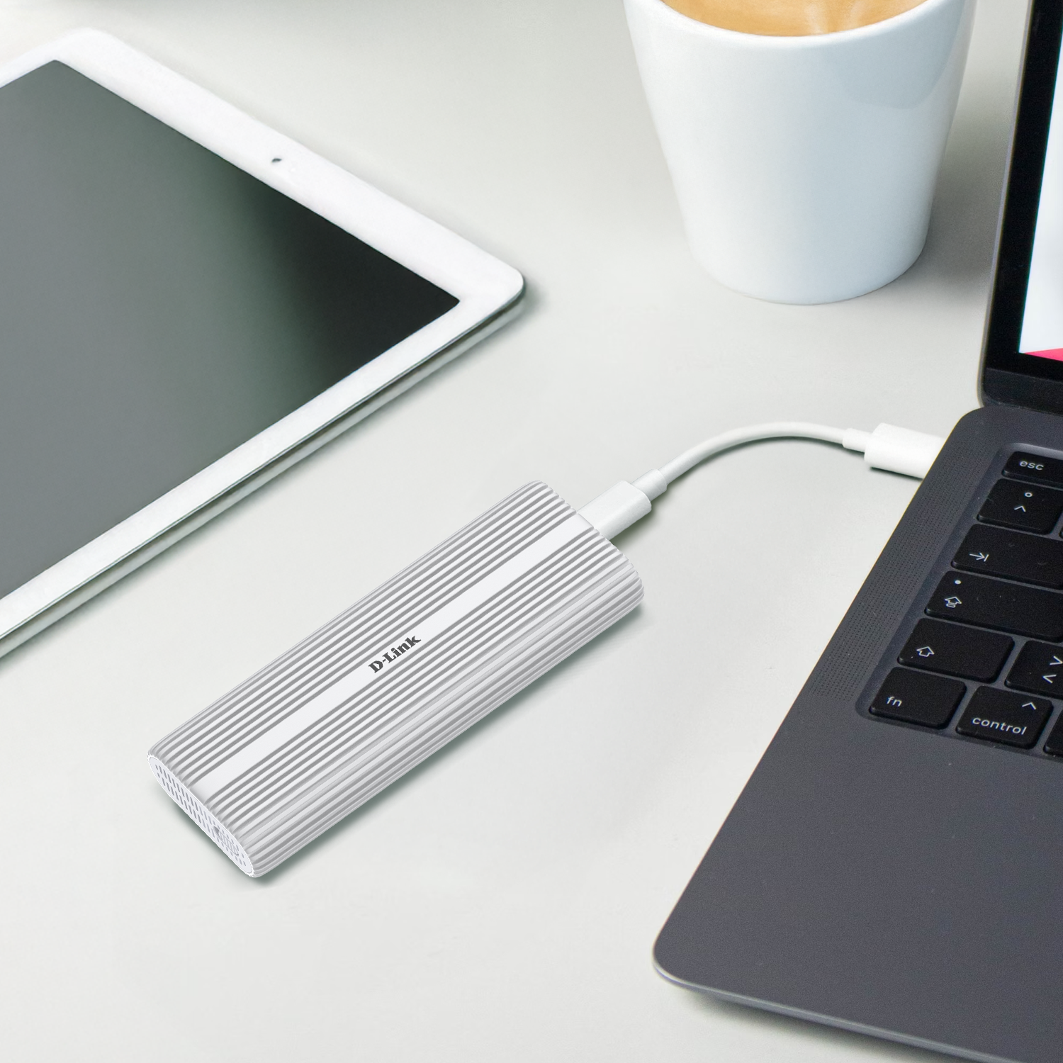 The D-Link DSP-411 SSD Enclosure delivers ultra-fast, portable up to 8 TB storage for professionals and creators. Supporting USB4, it offers up to 40 Gbps high-speed data transfer, ideal for 4K editing, backups, and streaming. With a durable aluminum design, a silent cooling MagLev fan and tool-free setup, it’s perfect for on-the-go use across Windows, macOS, Android and Linux devices, combining speed, convenience, and versatility in one compact enclosure.