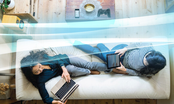 The DSL-G2452DG uses the latest Wireless AC technology, which provides transfer rates of up to 1.2 Gbps (866 AC + 300 N). The router operates on both the 2.4 GHz and 5 GHz wireless bands at the same time using concurrent dual-band technology and two external antennas. This allows you to browse the web, chat, and e-mail using the 2.4 GHz band, while simultaneously streaming digital media, playing online games, or making Internet voice calls on the 5 GHz band.