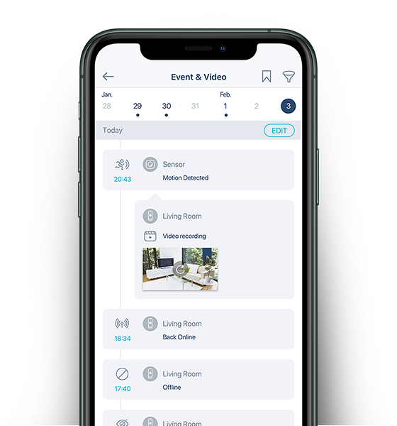 Les alertes mobiles vous signalent instantanément ce qui se passe. Personnalisez la sensibilité, et interagissez avec d’autres appareils.