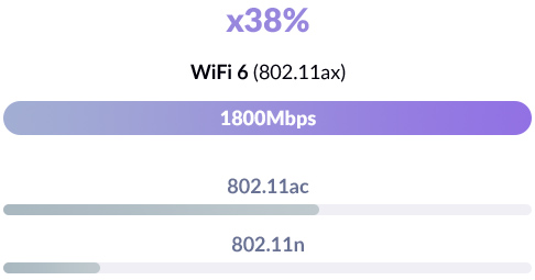 Apportez des vitesses Wi-Fi 6 de nouvelle génération à la maison allant jusqu'à 1,8 Gbit / s. Découvrez une vitesse 90% plus rapide sur la bande 2,4 GHz et une vitesse presque 40% plus rapide sur la bande 5 GHz, pour une meilleure façon de profiter d'une navigation plus rapide, du streaming 4K et les jeux en ligne.