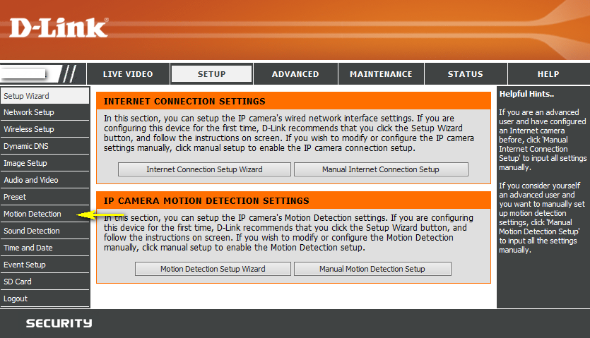 Step 4: Click Motion Detection on the menu at the left-hand side of the page.