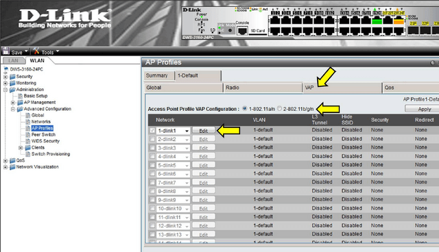 Click on the tick-box next to the profile name and then click “Apply” button to apply the changes to the DWS-3160 on access points
