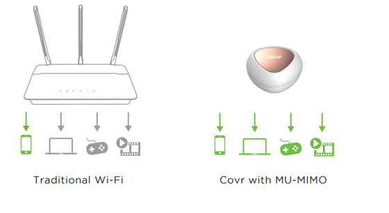 Covr also uses MU-MIMO technology which efficiently handles traffic to multiple devices for even greater wireless speeds.