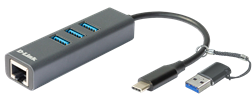 USB-C/USB to Gigabit Ethernet Adapter with 3 USB 3.0 Ports