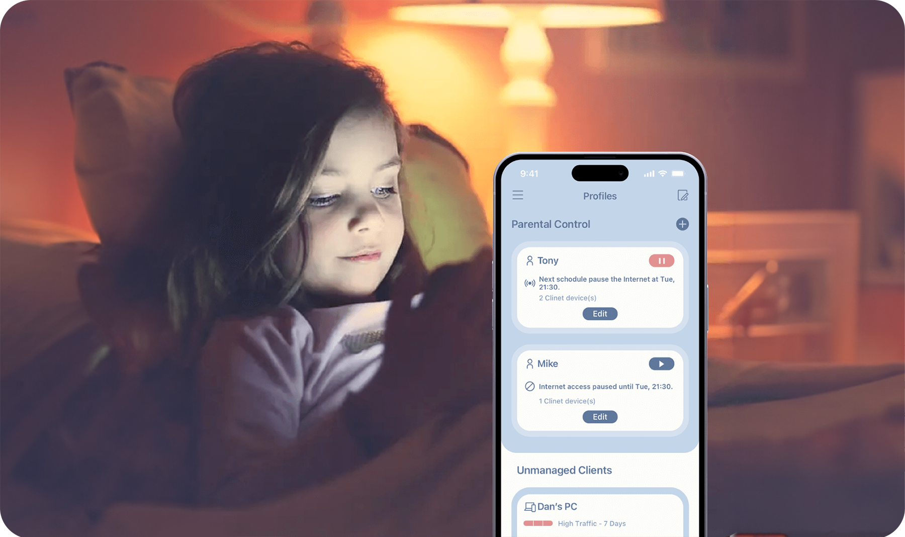 *Advanced Parental Controls require that you use an AQUILA PRO AI M60 or M30 mesh router to power your network.