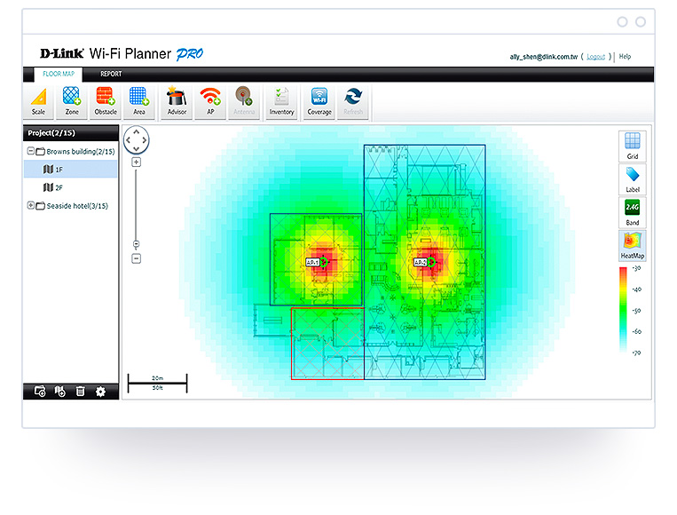 The Wi-Fi Planner Pro tool enables you to see Wi-Fi environments prior to deployment. It makes planning and communicating WLAN deployments with clients a lot easier. Wi-Fi Planner Pro is one of the free tools available on the D-Link Partner Portal which is exclusive to D-Link Partners.