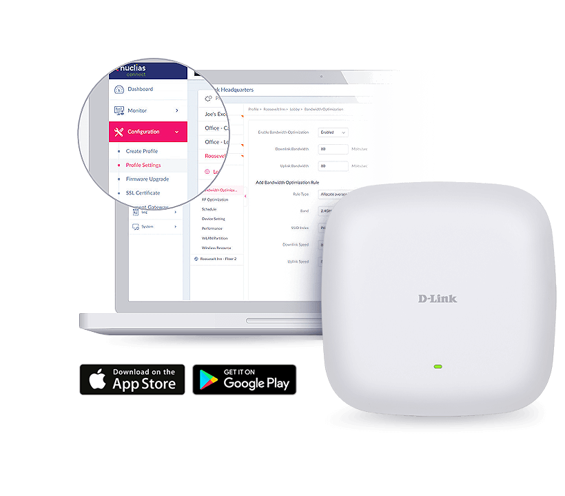 The DAP-X2850 works with Nuclias Connect - a software-based management platform (with optional hardware controller) that can be used on-premises, or as a cloud solution hosted on a public cloud service. Admin tasks can be swiftly carried out from the Nuclias Connect app, or server/PC-based software for easy access, automation, and network scalability.