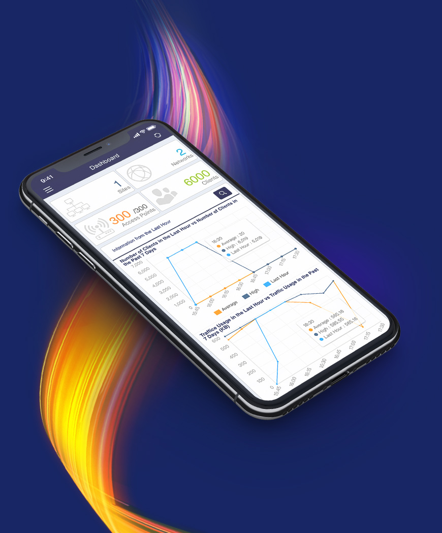 Easily manage your network on the go, get an instant overview of live usage and your network’s health, and delegate access to your teams. You can even upload your own map to visually show the location of your devices and create Wi-Fi access log-in pages that can be fully branded.
