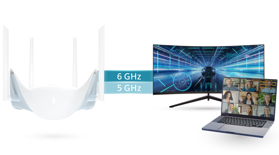 - Tri-Band Performance: 2,4 GHz, 5 GHz e 6 GHz utilizando canais ultra largos de 320 MHz