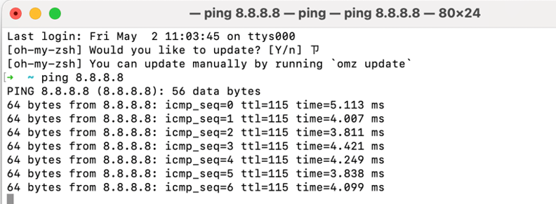 3. After the connection is established, PC A is permitted to ping 8.8.8.8.